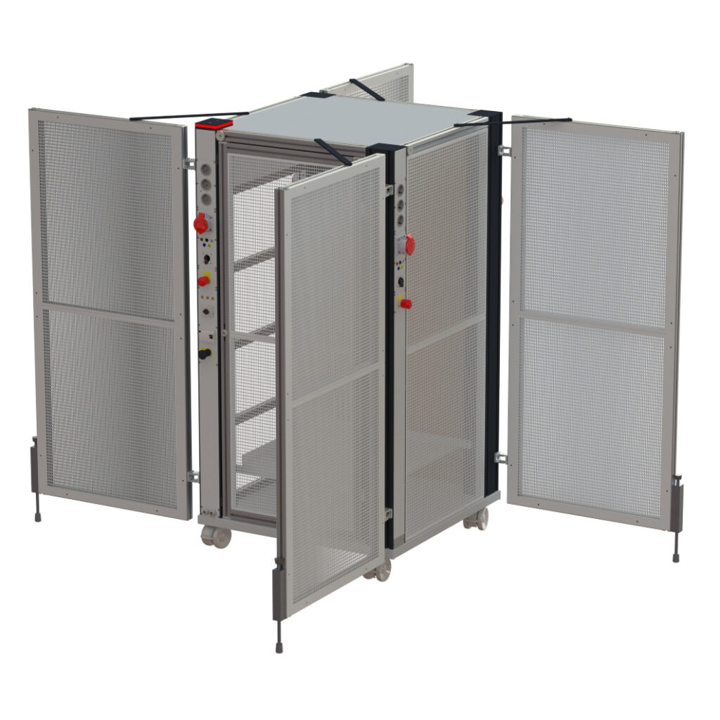 Die hera Testkabinen eignen sich ideal für das gefahrlose Testen und Prüfen von Baugruppen mit gefährlichen Spannungen.